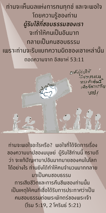 เพราะพระเจ้าทรงเป็นผู้พิพากษาตัดสินเรา พระองค์ทรงเป็นผู้วางกฎหมายให้เรา พระองค์ทรงเป็นกษัตริย์ของเรา พระองค์เองที่จะทรงช่วยเราให้รอดพ้น ถอดความจาก อิสยาห์ 33:22