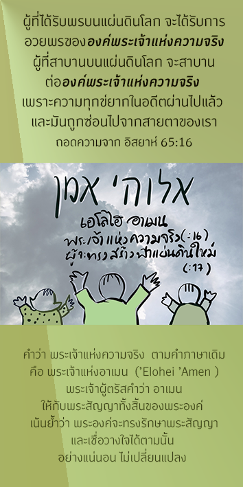 พระเจ้าองค์เดียวของเรานี้ ทรงมีพระนามที่ บ่งบอกว่า พระองค์ทรงเป็นอย่างไร พระนาม มากมายทำให้เรารู้ว่า ทรงเป็นทุกอย่างในชีวิต เมื่อเราอ่านพระธรรมข้อนี้ พระองค์ทรงเป็น ทุกสิ่งที่จำเป็นในชีวิตของเรา มีพระองค์เท่ากับ เรามีมากเหลือล้น ท่วมท้นชีวิต ขอบคุณพระเจ้ามากเหลือเกิน